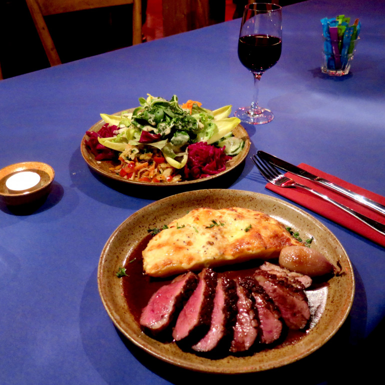dazu Kartoffelgratin und schöner Salatteller